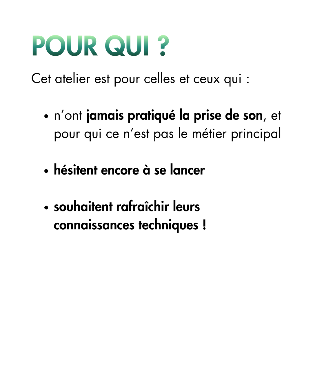 ATELIERS À VENIR